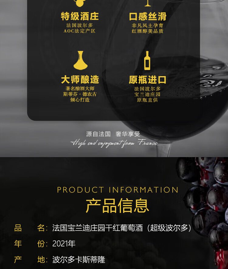 上一个:路易城堡(CHATEAU LOUIS)【法国进口红酒】2020年份宝兰迪庄园干红葡萄酒 波尔多卡斯蒂隆 单支装红酒