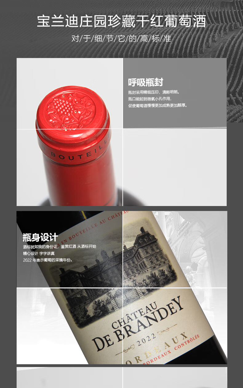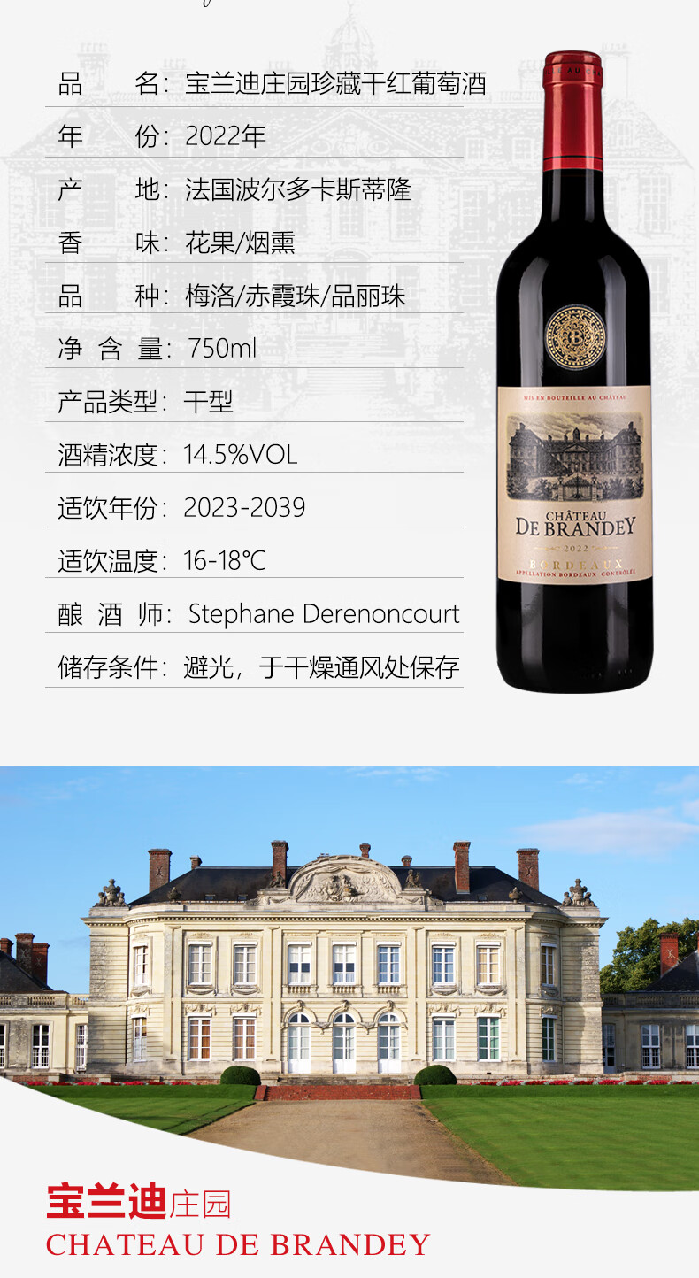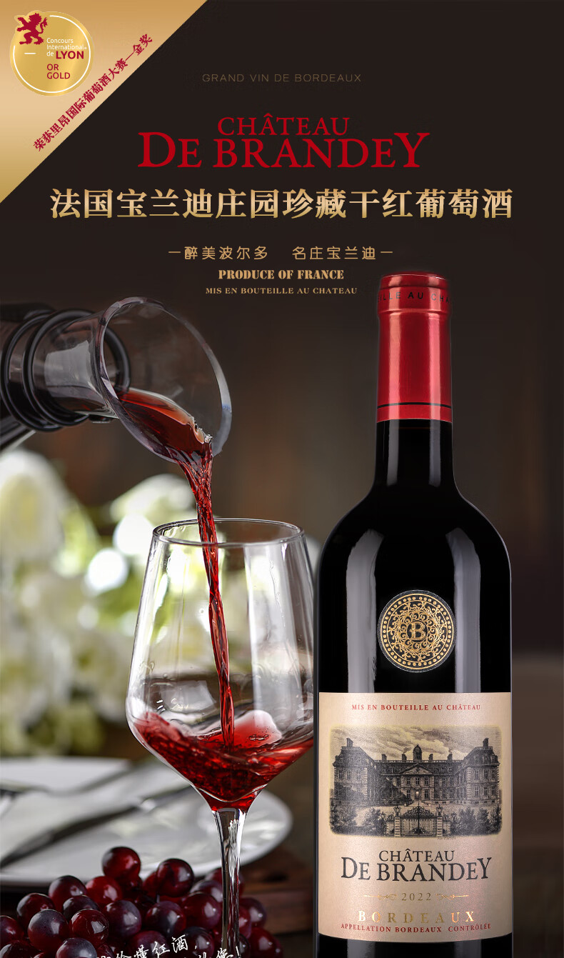 • CHATEAU LOUIS【宝兰迪庄园】2022年份珍藏干红葡萄酒 法国波尔多原瓶原装进口 750ml单支装红酒